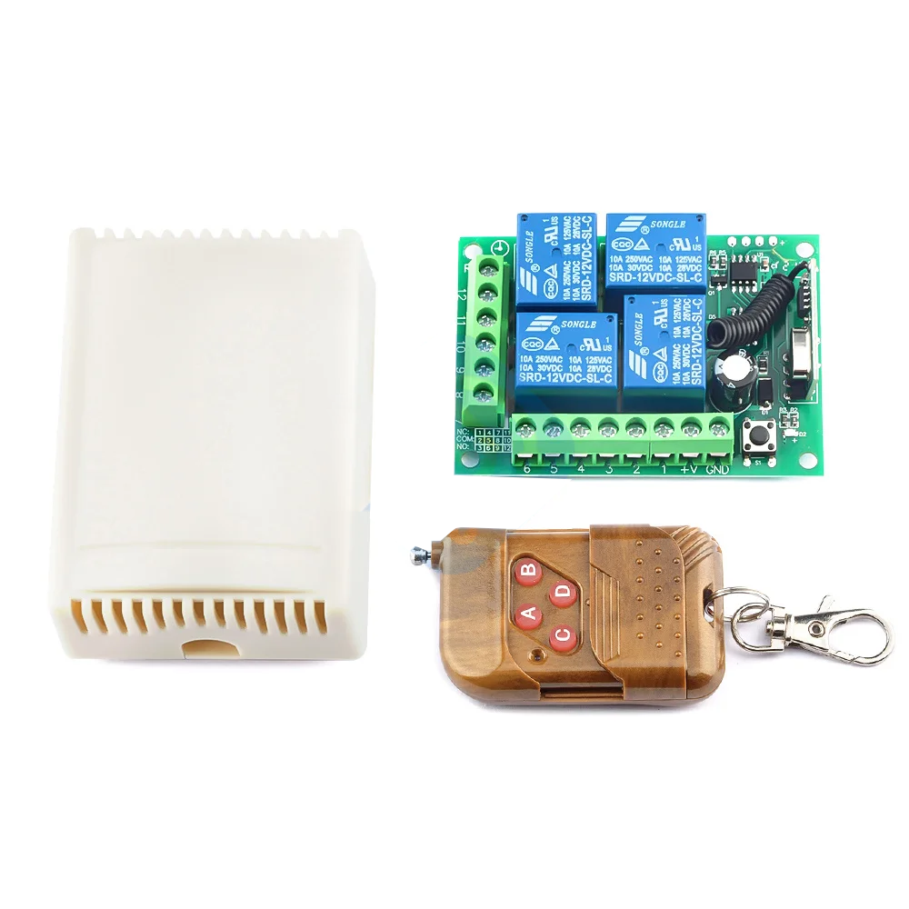 12VDC 4 Way 4 Channel RF Relay Module with Remote Controller 10A 433MHz